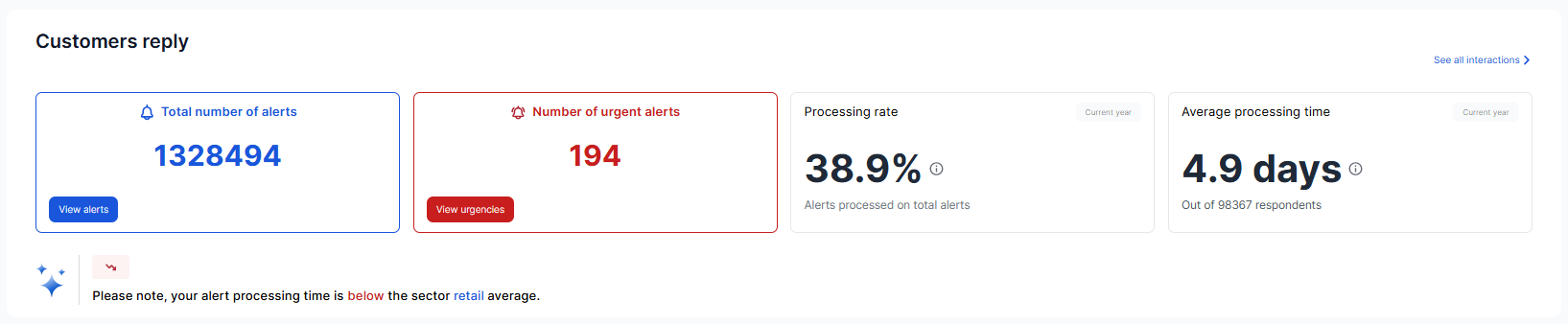 - The average processing time for your alerts