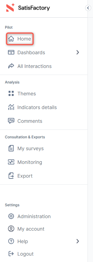 The home page brings together the main KPI of your program, offering you a central and responsive interface to manage the voice of your customers.
