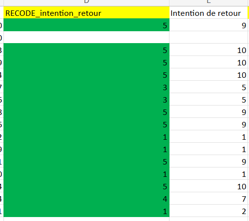 En cas de modification en masse de réponses, de notes ou de métadonnées, nous vous recommandons de dédoublonner les colonnes correspondant aux valeurs à modifier afin de conserver un historique des changements effectués. Pour plus de clarté, renommez ces nouvelles colonnes en “RECODE_nomcolonne” ou renommez la colonne d'origine "OLD_nomcolonne".