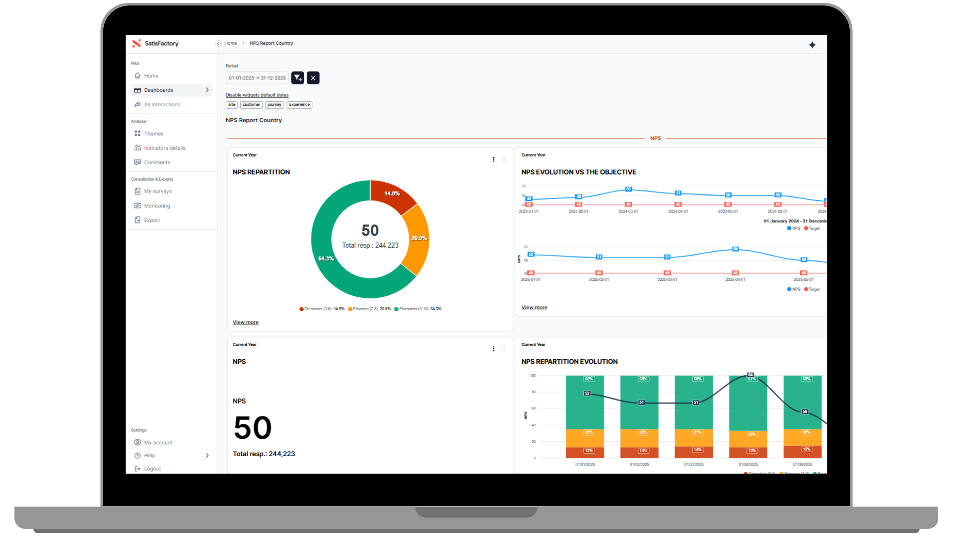 In an ultra-competitive market where customer experience is a strategic challenge, SatisFactory helps you collect and process customer feedback, but above all, simplifies analysis to make it accessible to all your collaborators.
