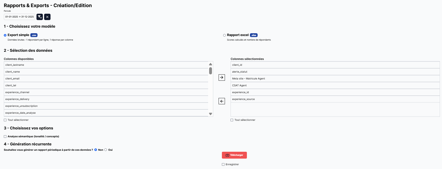 Pour cela, nous vous invitons à consulter notre article dédiée qui vous détaille toutes les étapes : Créer un rapport ou un export