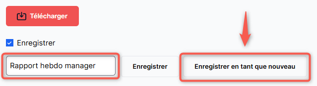 Vous pouvez l'enregistrer tel quel ou créer une copie. Pour ce faire, faites défiler jusqu'en bas de la page. Dans le champ de texte, donnez un nom au nouveau rapport/export puis appuyez sur le bouton "Enregistrer en tant que nouveau".