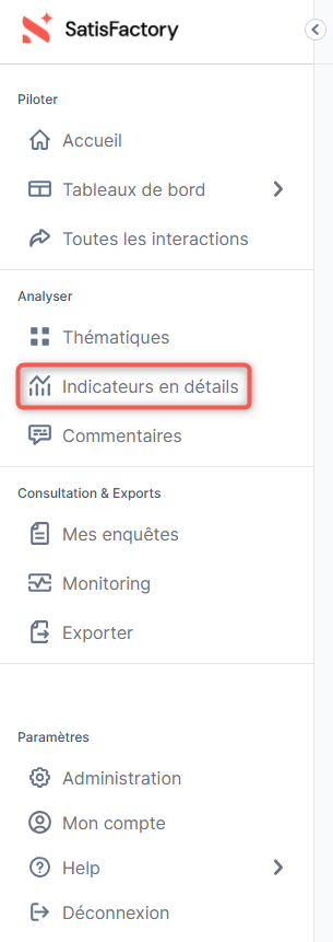 Depuis l'onglet "Indicateurs en détail", retrouvez l'ensemble de vos indicateurs clés et items de satisfaction au sein d'une page structurée.
