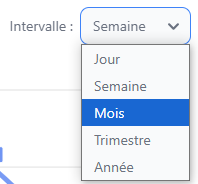 Pour changer l'intervalle de temps (granularité) des données affichées, utilisez la liste déroulante qui se trouve dans le coin supérieur droit de l'encadré.