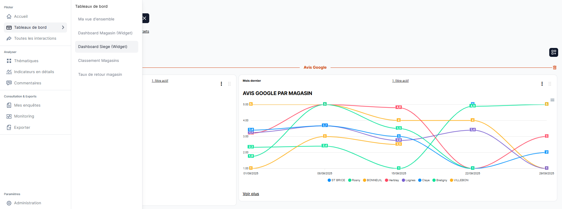 ⚠️ Pour garantir des tableaux de bord clairs, synthétiques et performants, le nombre de widgets est limité à 30 par tableau de bord, séparateurs inclus.