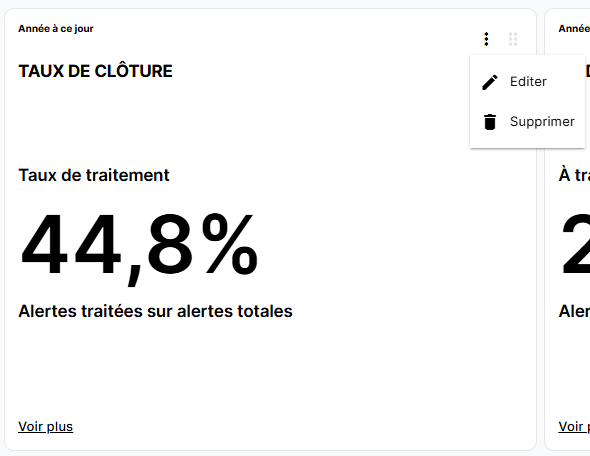 Pour modifier un widget dans votre tableau de bord, il vous suffit de cliquer sur l'icône représentant une ellipse verticale (⋮) puis de cliquer sur "Editer".