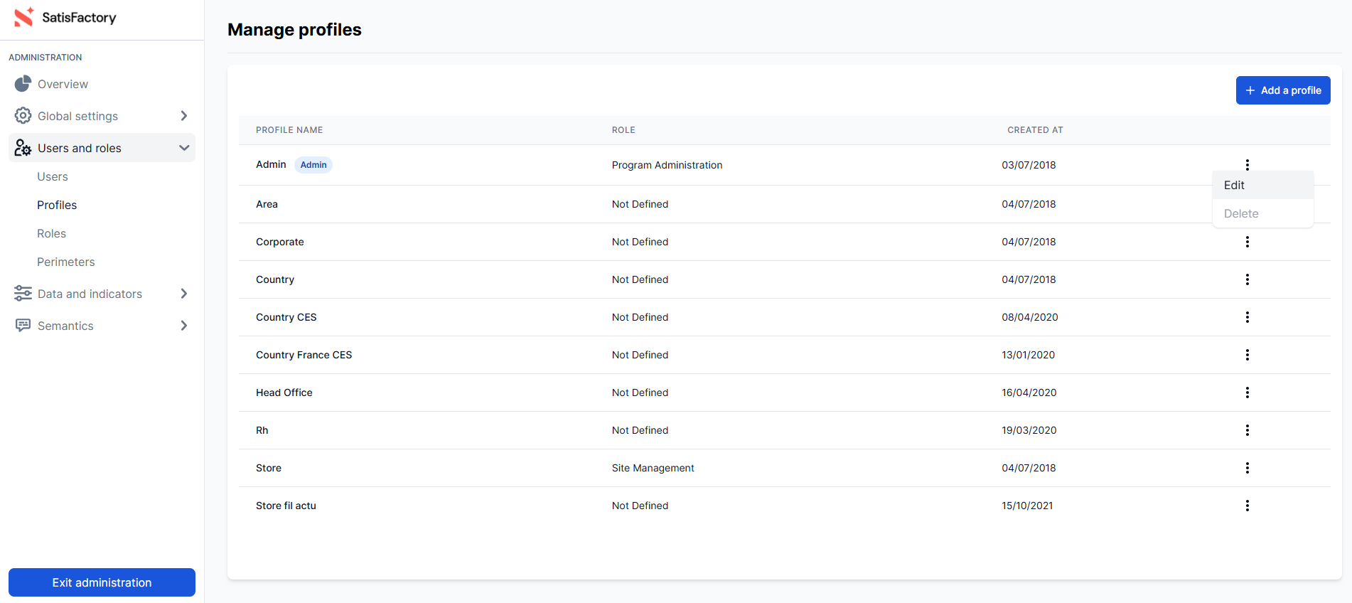 From the "Profiles" section of the administration center, simply select a specific profile, click the vertical ellipsis icon (⋮), then click "Edit".