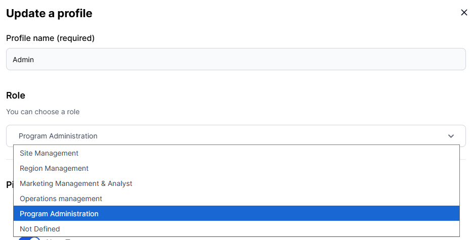 The side panel then opens, allowing you to associate the appropriate role with the user profile using the dedicated dropdown list.