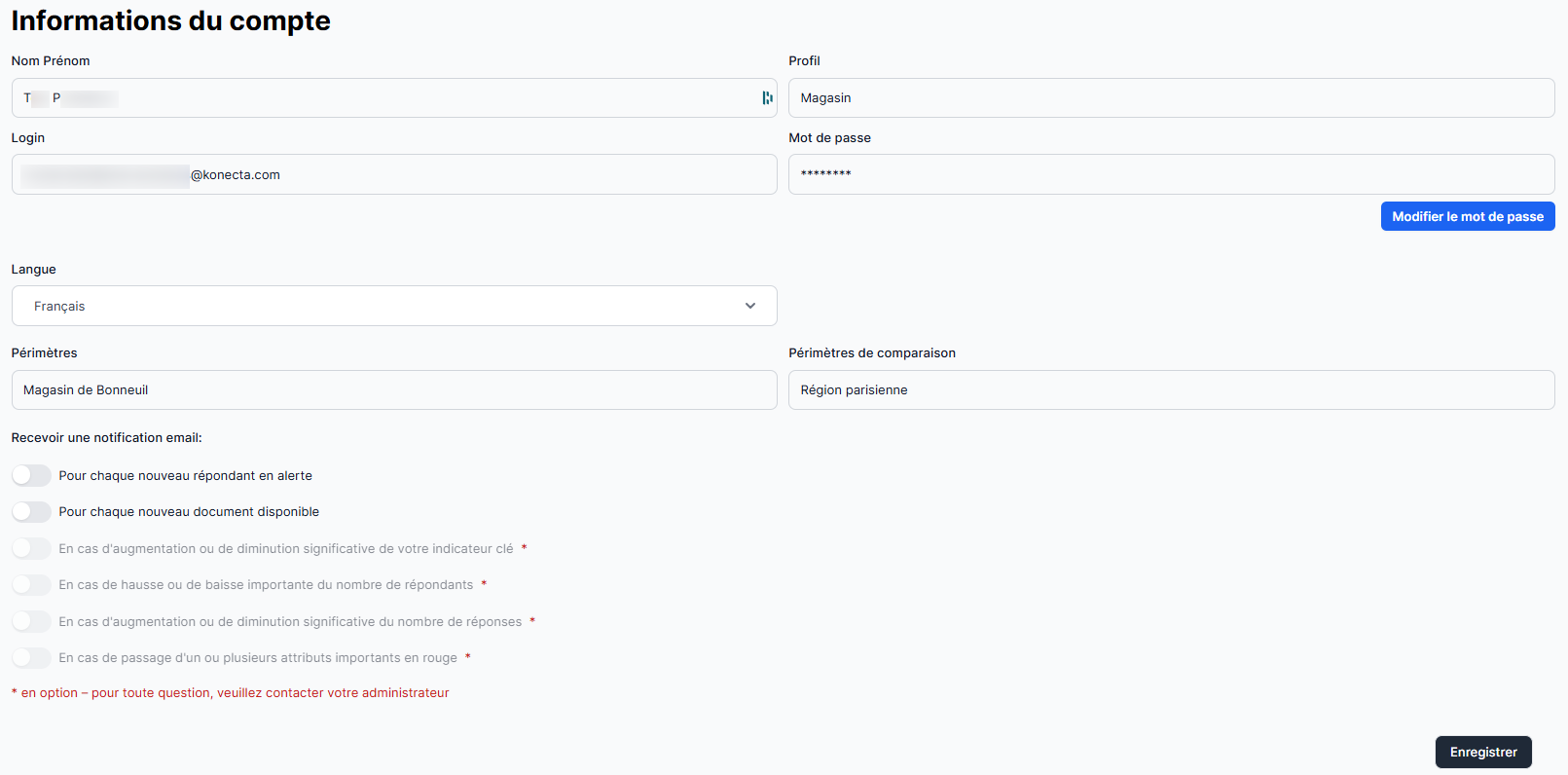 Depuis l'onglet "Mon compte", accédez à tout moment au paramétrage de votre accès d'utilisateur de la plateforme SatisFactory.