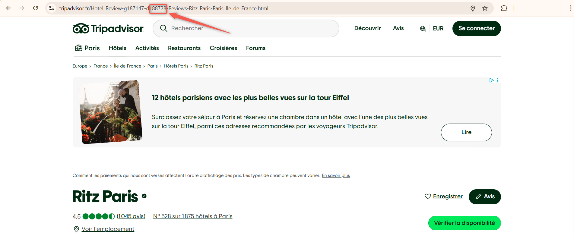 Récupérer le Location ID TripAdvisor et l'URL d'un établissement