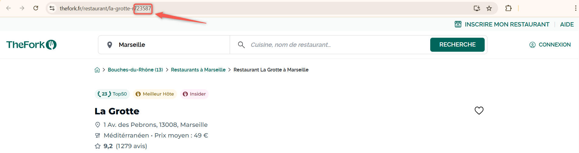 Récupérer le Restaurant ID TheFork et l'URL d'un établissement