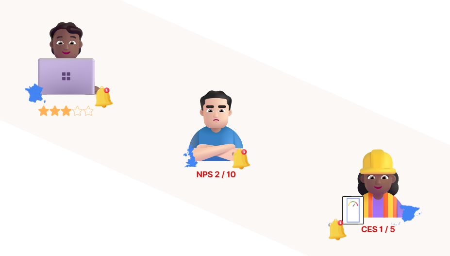 - Identifier instantanément les clients nécessitant une attention particulière (insatisfaits, détracteurs, voulant être contactés, etc.) pour agir avant qu'il ne soit trop tard