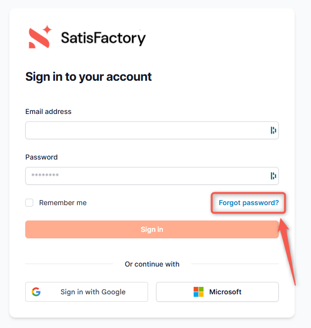 Have you lost or forgotten the password that allows you to access the SatisFactory platform and want to recover it?