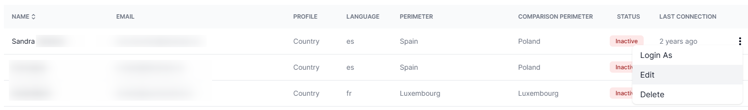 From the "Users" section of the administration center, hover over an existing user, click on the icon representing a vertical ellipsis (⋮) and then click on "Edit".