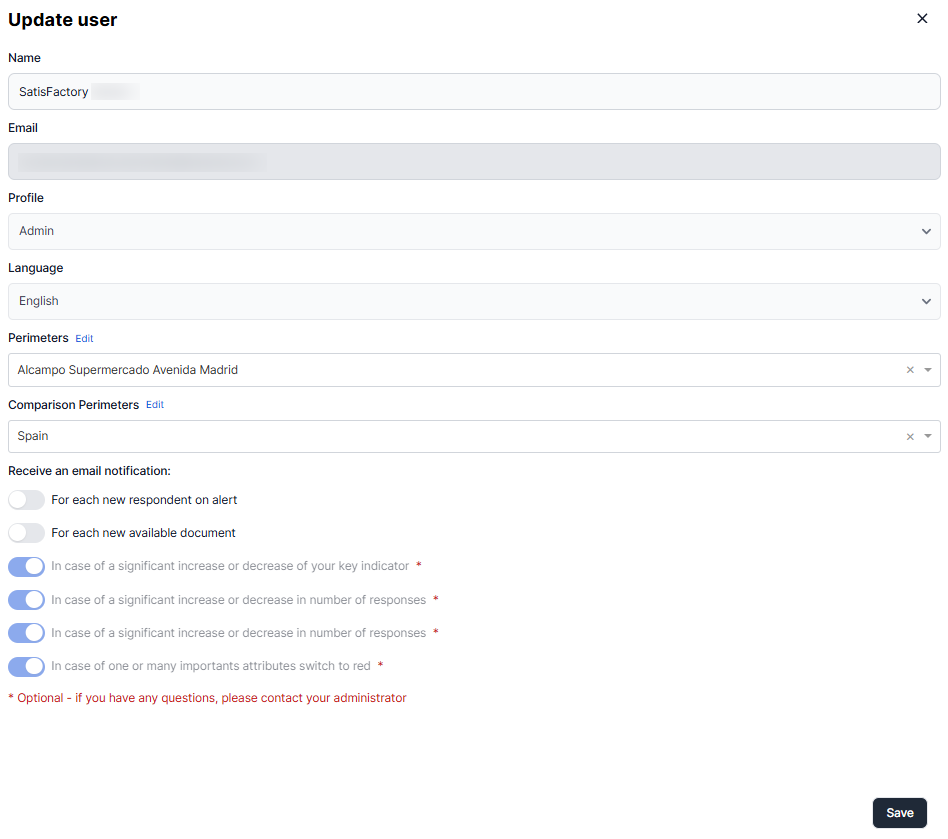 ⚠️ For security reasons, the modification of users is the responsibility of your platform administrators. SatisFactory support is therefore not authorized to perform this operation.