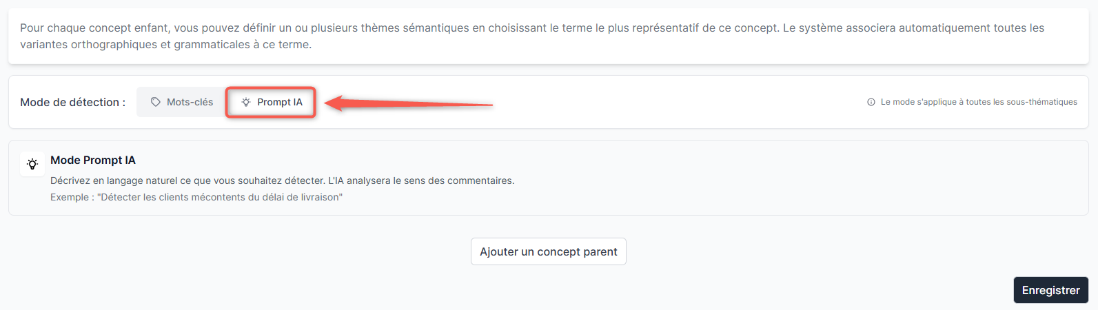 Si la catégorisation des commentaires par le moteur propulsé par l'intelligence artificielle générative est souvent plus précise, il est essentiel de paramétrer correctement l'outil selon la méthode choisie. Découvrez ci-dessous les étapes de configuration pour les deux méthodes, consultez celle qui correspond à vos besoins.