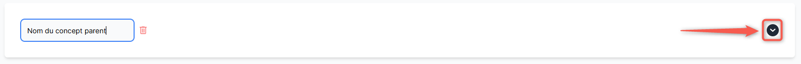 Cliquez ensuite sur le bouton "Ajouter un concept parent", un nouveau champ s'ouvre, vous permettant de nommer le concept parent (la thématique). Cliquez sur le bouton en forme de flèche pour dérouler le concept parent et configurer les concepts enfants (les sous-thématiques) qui lui sont associées.