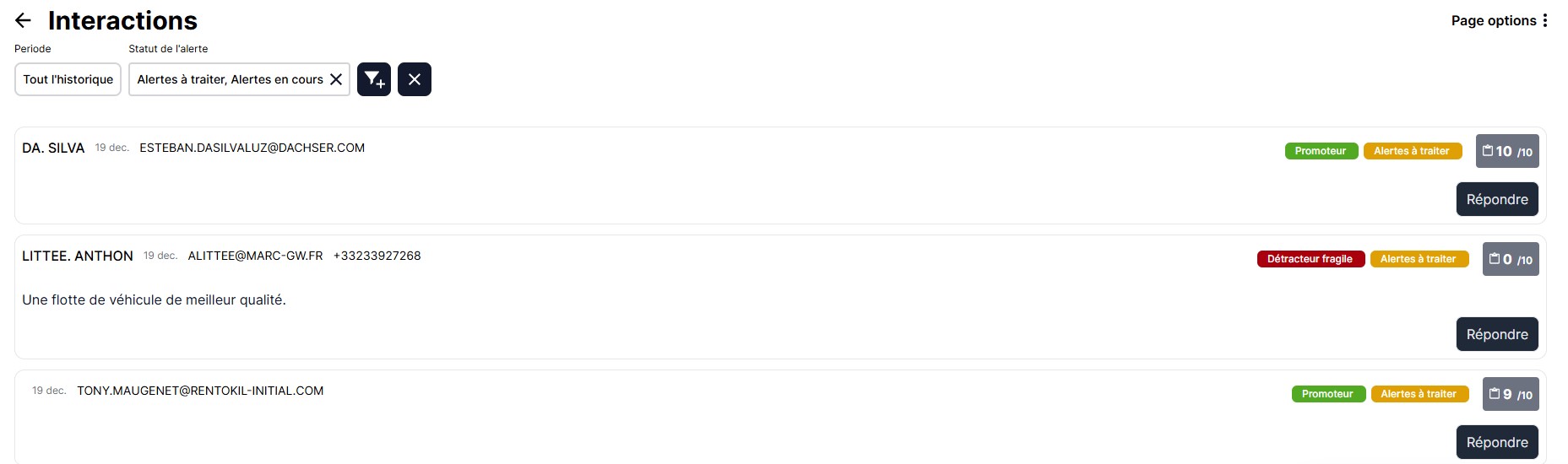 AnsweredLa liste des enquêtes n'est pas du tout optimisée visuellement: éléments tout à gauche et le reste des informations tout à droite avec un grand blanc au milieu: