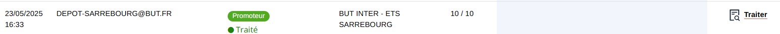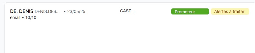 Les informations présentées dans la version actuelle sont visibles directement avec les données clés: date de la réponse/ le nom du client / la note / le commentaire du client