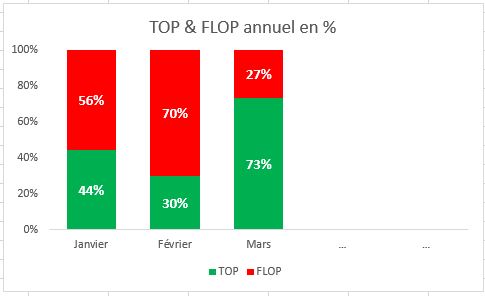 Un graphique en barre avec le nombre de TOP et de FLOP en % sur l'année + ajouter le nombre de répondants + ajouter graphique en anneau "cumul annuel"