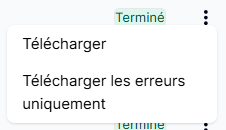 Pour mieux comprendre les erreurs, le système vous propose deux options : télécharger votre fichier initial (disponible aussi si aucune erreur n'est constatée) ou télécharger un rapport contenant uniquement les erreurs.