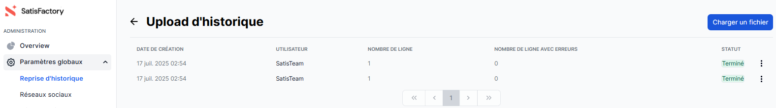 Vous pouvez ensuite suivre l’état d’avancement du traitement du fichier directement depuis la page "Reprise d’historique".