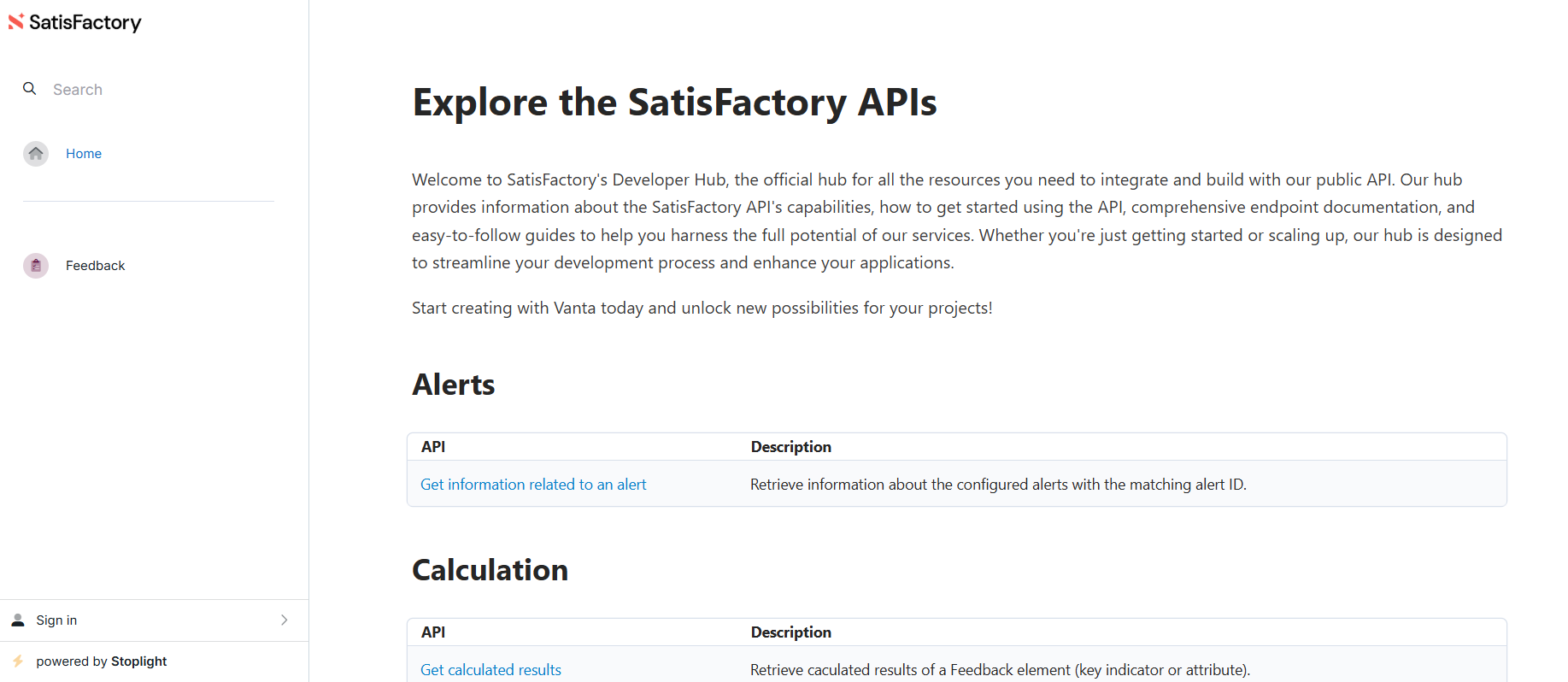 En cliquant sur le bouton "API", vous accéderez à l'espace regroupant toute la documentation technique de l'application SatisFactory.