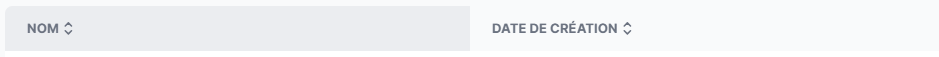 La liste est dynamique : vous pouvez la trier par nom (ordre alphabétique) ou par date de création en cliquant sur l'en-tête de la colonne correspondante.