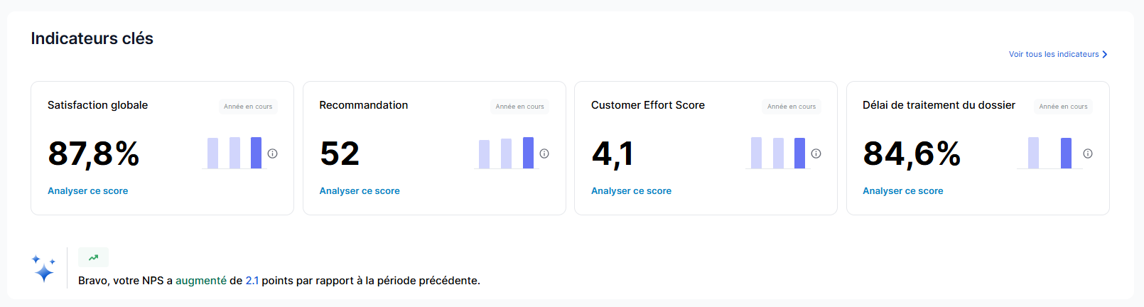- Dans les sections "Réponses aux clients" et "Indicateurs clés" de la page d'accueil