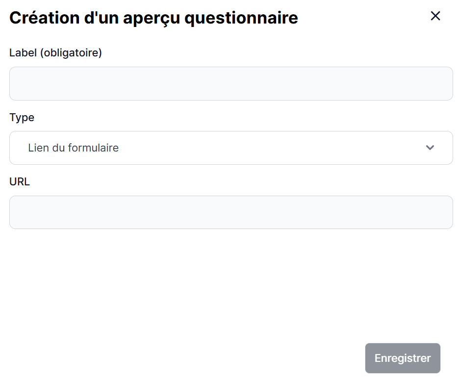 Dans le cas où vous avez sélectionné "Lien du formulaire", complétez l'URL d'accès au questionnaire.