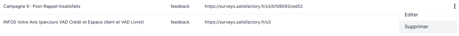 Pour supprimer un aperçu déjà existant, il vous suffit de vous positionner sur l'élément dans la page des prévisualisations, de cliquer sur l'icône représentant une ellipse verticale (⋮) puis de cliquer sur "Supprimer".