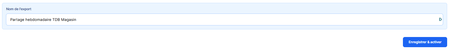 Enfin, il ne vous reste plus qu'à nommer votre partage de tableau de bord et à cliquer sur le bouton "Enregistrer & activer". Un message de confirmation s'affichera alors automatiquement dans le coin supérieur droit de l'écran, vous confirmant que le partage du tableau de bord a été activé.