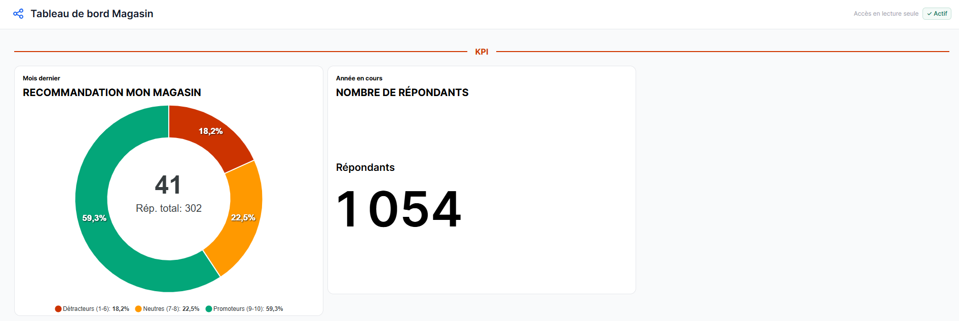 En cliquant sur le bouton "Accéder", vous accédez directement au tableau de bord partagé, qui sera filtré sur le périmètre d'analyse de l'utilisateur qui vous a partagé le tableau de bord.