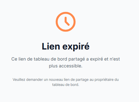 ⚠️ Pour garantir la sécurité des données de votre compte, le lien d'accès au tableau de bord est actif durant 7 jours. Si vous souhaitez y accéder de nouveau passé ce délai, il vous suffit de générer un nouveau partage ou de modifier les paramètres de récurrence.