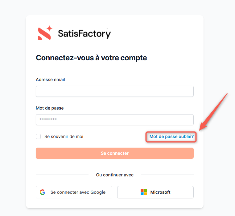 Si l'email de réinitialisation de mot de passe n'apparaît pas dans votre boîte de réception, commencez par consulter vos courriers indésirables (spams) et recherchez l'expéditeur "satisfactory@email-booster.satisfactory.fr".